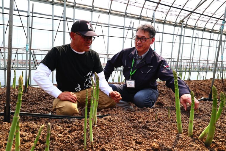 渡邉さん「こんな時はどうすればいいのかなど、神田さんはいろいろと教えてくれるので頼りにしています。アスパラガスだけではなく、ほかの野菜の栽培でもお世話になっています」