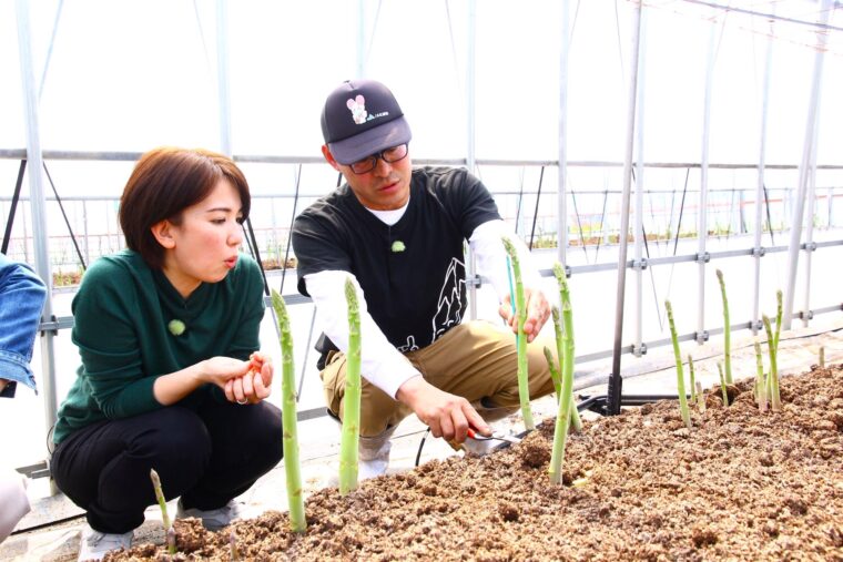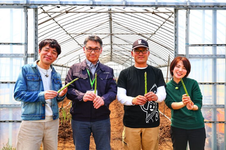 今回の『とれたて! えいっとレシピ』では、アスパラガスを生産する渡邉さんと、JA北新潟 営農販売部 園芸課 神田さんに登場していただきました。