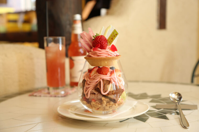 春のおすすめは『いちごのモンブランパフェ』。