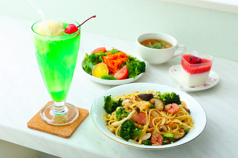 明太子、キノコ、ナポリタンの3種類から選べる『パスタ』(1,500円)は人気メニューのひとつ。