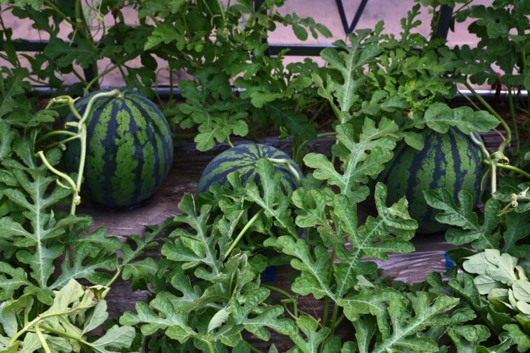 実がつき始めてからは、温度管理と水管理が重要になります。また、ハウス内を少し蒸すように湿度を高く保つのも、おいしいすいかを作る秘訣なんだとか。