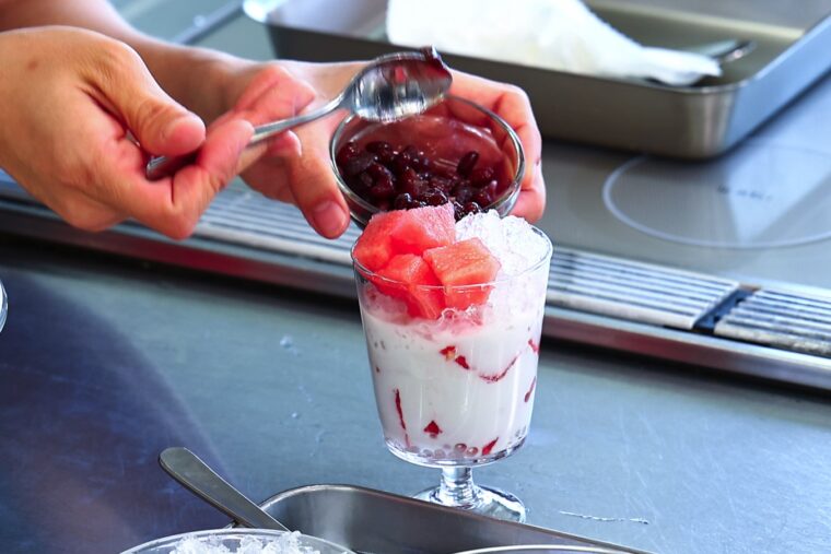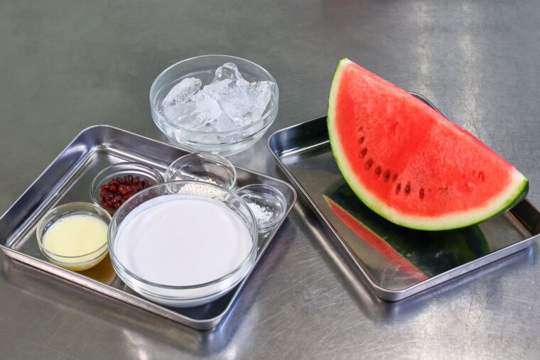 練乳とココナッツミルクのまろやかな甘みが、すいかの自然な甘みとみずみずしいシャリ感を一層引き立てています。