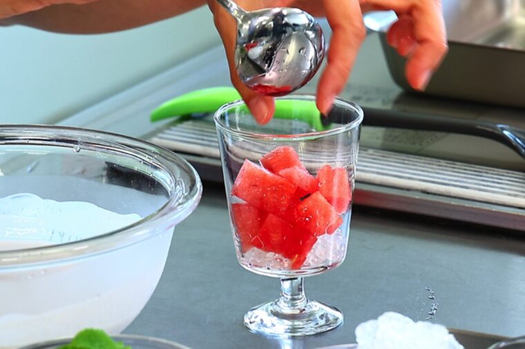 さらに、クラッシュ氷の食感が加わることで、新鮮な風味のスイーツに仕上がりました。すいかの新たな可能性を感じさせる一品です。ぜひ、作ってみてください。