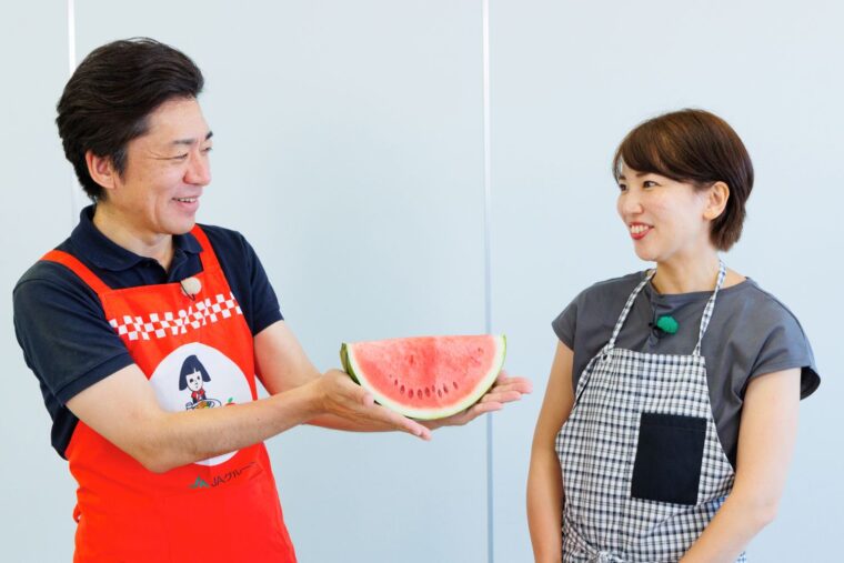 今回の『とれたて! えいっとレシピ』では、「南浜すいか」を生産する金田優希さんと、JA新潟市の野上克巳さんに登場していただきました。