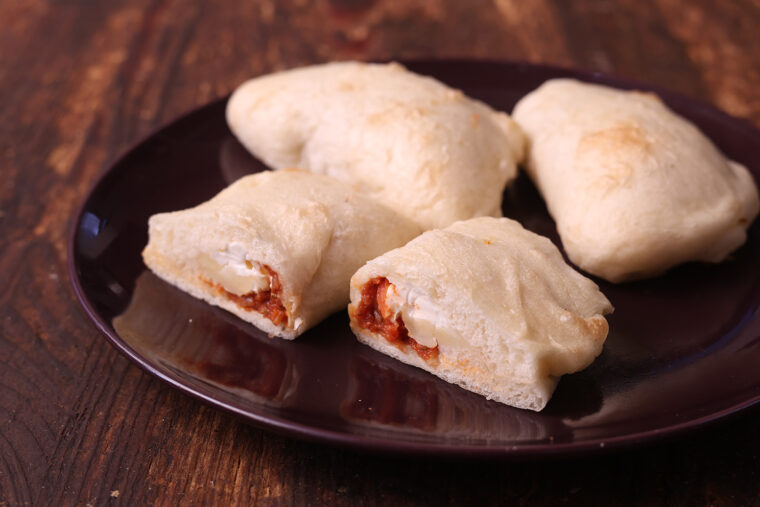 口溶けがよく、もちっとした食感が特徴的な看板商品の食パンの生地を用い、オリーブオイルをたっぷり使って成型することで、独特のなめらかさを引き出しています。ひと口頬張れば、中からチーズフォンデュソースとピザソースがとろりとあふれ出し、濃厚な味わいを楽しむことができます。