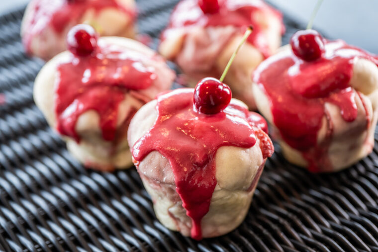 最後にチェリーピューレアイシングとフレッシュチェリーでかわいくデコレーション。
