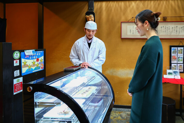 上生菓子に目を止めた三好さんに「毎月、その季節らしい見た目や味わいのものを5〜6種類ご用意しているんですよ」と金巻さん。