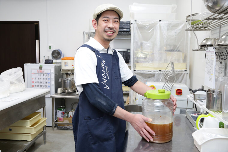 レーズンから丁寧に育てた液種(えきだね)の酵母が香りとうまみを引き出した、とってもおいしいパンなんです。