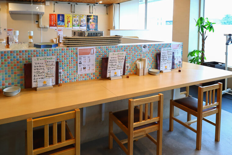 店内はカウンターを中心に、テーブル、小上がりで構成。