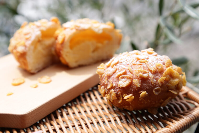 いかつい見た目に一瞬びっくりしますが、これは『カスタードドーナツ』。覆っているのはコーンフレークでした。