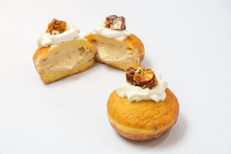 リリッカの生ドーナツは、もっちり食感に仕上げるためにカボチャを練り込んだブリオッシュ生地に、たっぷりのキャラメルクリームが入っています