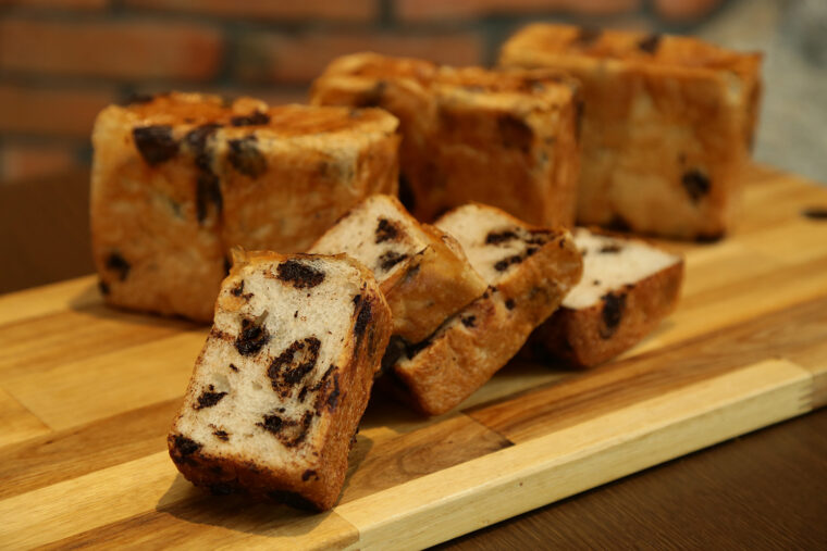プレーンのほか、ミルクチョコチップを混ぜ込んだ『生チョコ食パン』(1本389円)も用意しています。こちらはおやつとして大人にも子どもにも大人気!