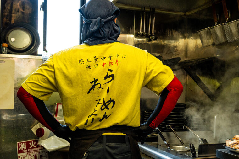 駅南時代の店主は現役を引退しましたが、このTシャツの文字を見ると「笹口中華亭が復活したんだな…」と改めて実感します。