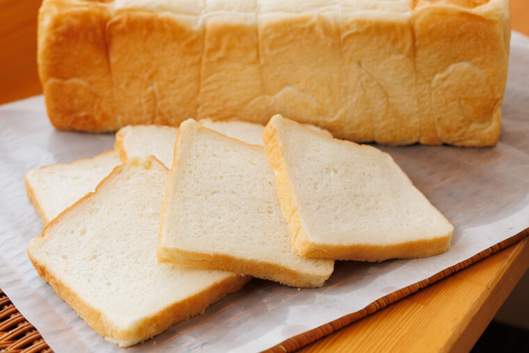 人気の『もちもち食パン』は、湯ごね製法を用いることで、モチモチとした食感が長続き!
