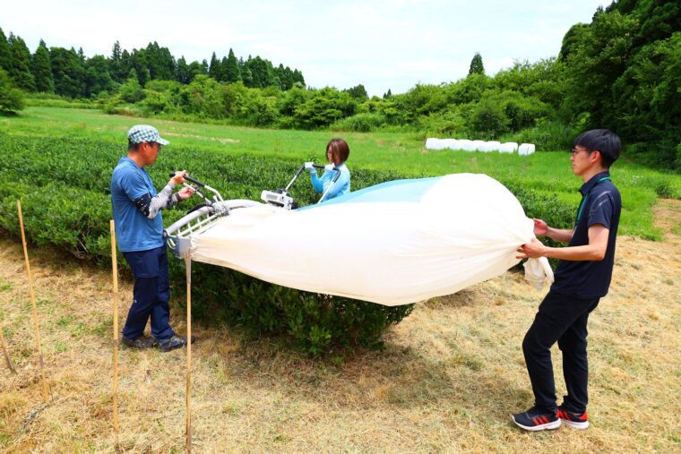 今回の『とれたて! えいっとレシピ』では、「佐渡番茶」を生産する前岨 豪(まえそばたけし)さん・美智恵(みちえ)さんご夫妻と、JA佐渡 営農振興部 販売企画課の大貫 碧(おおぬきあおい)さんに登場していただきました。