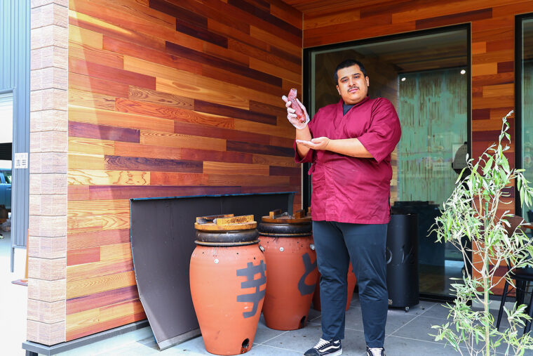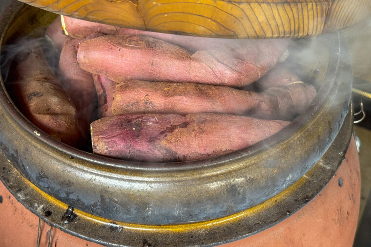 壷焼き芋は、店長の小林秀輝さんが毎朝店頭の壷でじっくりと焼き上げています。
