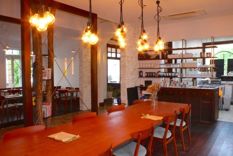 空間ごとに床材の張り方を変えることで、異なる雰囲気を演出。その日の気分に合った好きな席で過ごすことができるのが魅力です。