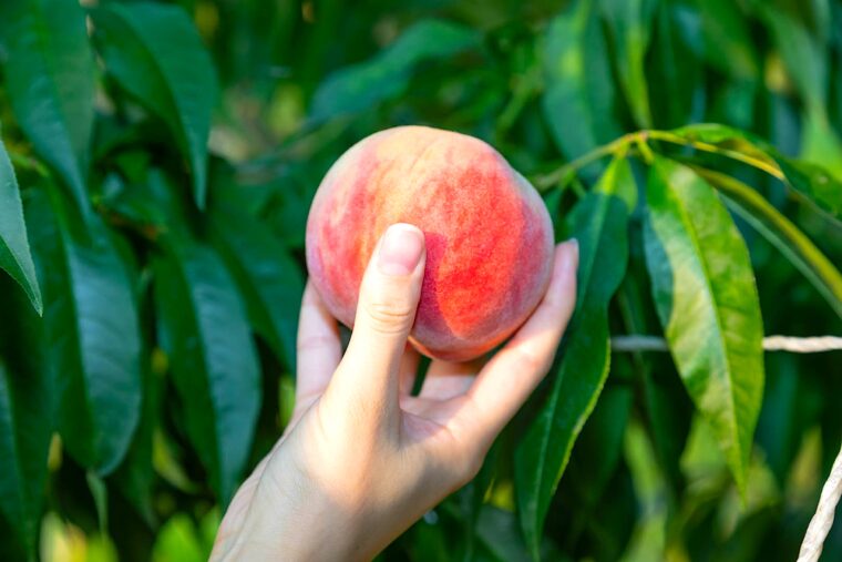 砂丘桃は、水はけがよく陽の照り返しが強い砂丘地で作られていることから、普通の桃よりも糖度が高いと言われている刈羽村特産の桃です。江戸時代から栽培され、170年を超える歴史があるとか。現在刈羽村では14品種約500本の桃が栽培されています。