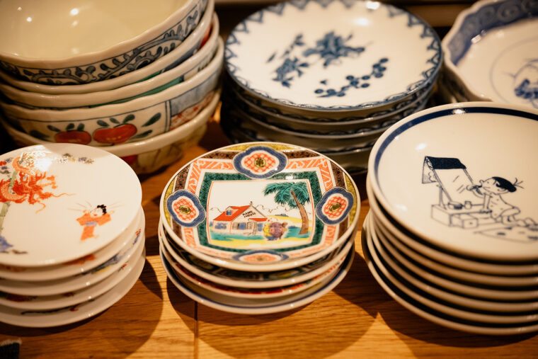 なかには人気アニメのキャラクターがデザインされた豆皿のかわいらしさに、心躍らせるお客の姿も。