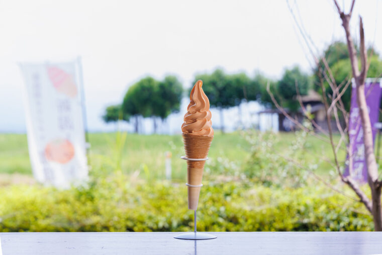 福島潟で自然散策を楽しんだ後に味わいたいのが、地元・新潟市北区の高儀農場で栽培されたフルーツトマトをたっぷり使用した『新潟トマトソフトクリーム』。濃厚なミルクとトマトのさわやかな酸味、ナチュラルな甘さが絶妙にマッチしています。
