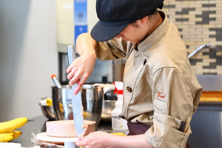 Foodのパティシエ学科を卒業後、経営に関する知識と実践力を身につけ、卒業後の開業を目指すためにフードプロデュース専攻科に進んだ、とっても意識の高い学生たちです!