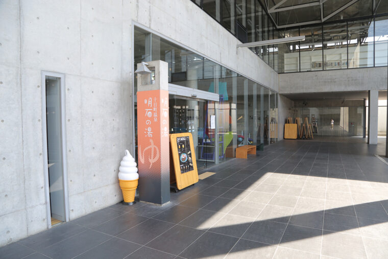 エントランスにはアート作品やカフェ、ショップがあり、こちらは入浴せずとも利用が可能です。