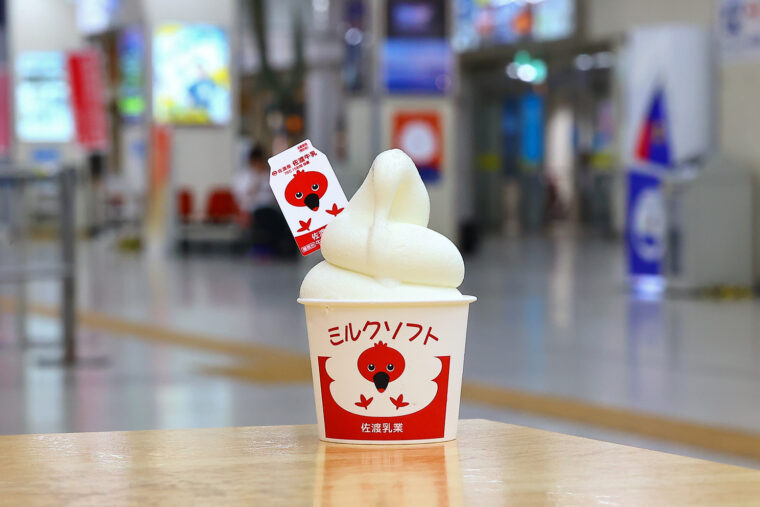 なかでも、観光客や遠征帰りの学生さんを中心に人気を集めているのが『佐渡乳業の佐渡ミルクソフト』。