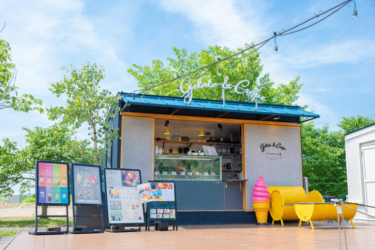 『もも太郎ソフトクリーム』や原田牛乳を使ったソフトクリーム、新鮮な果実・野菜を使ったジェラート、クレープを販売しています。
