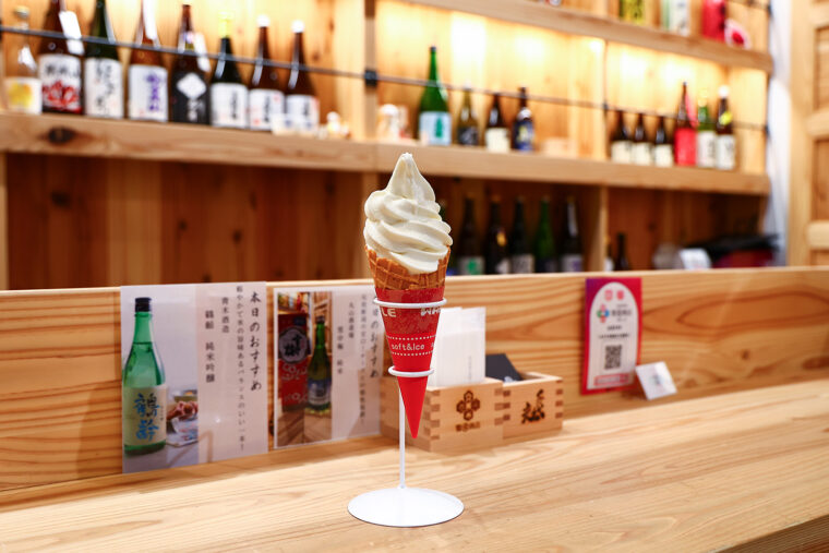 日本酒にもよく合うと評判なのが、『佐渡乳業 カマンベールソフトクリーム』(400円)。佐渡乳業のカマンベールチーズのうまみとコクをひと口目に感じることができます。