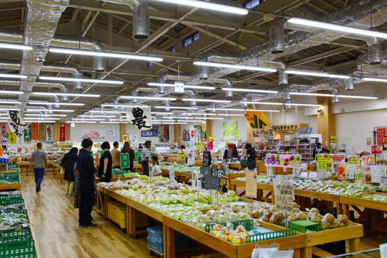 地元農産物の取扱量が県内トップクラスの直売所には、採れたての旬の野菜が豊富に並んでいます。店内にはジェラート、惣菜、豆腐の工房があり、さまざまな加工品も販売されています。