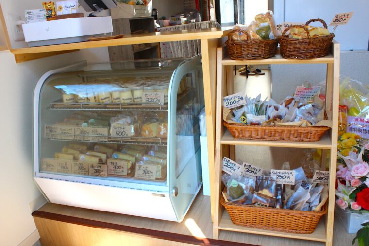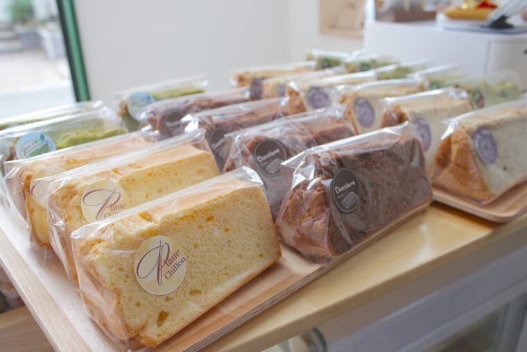 理科や家庭科を教えていた元中学教師のオーナー西方さんによる、理系女子らしい試行錯誤を重ねたシフォンケーキを販売。米粉を使用したグルテンフリーのシフォンケーキのほか、焼菓子(150〜300円)や『とろ〜りカスタードプリン』(320円)も用意しています。