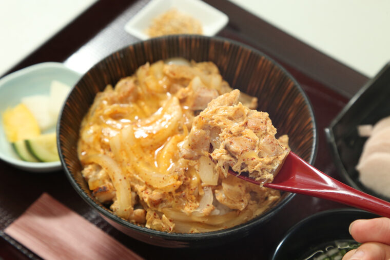 今回紹介するのは「あっさり」「こいくち」「ピリ辛」の3種類からダシを選べる『炙り親子丼』。