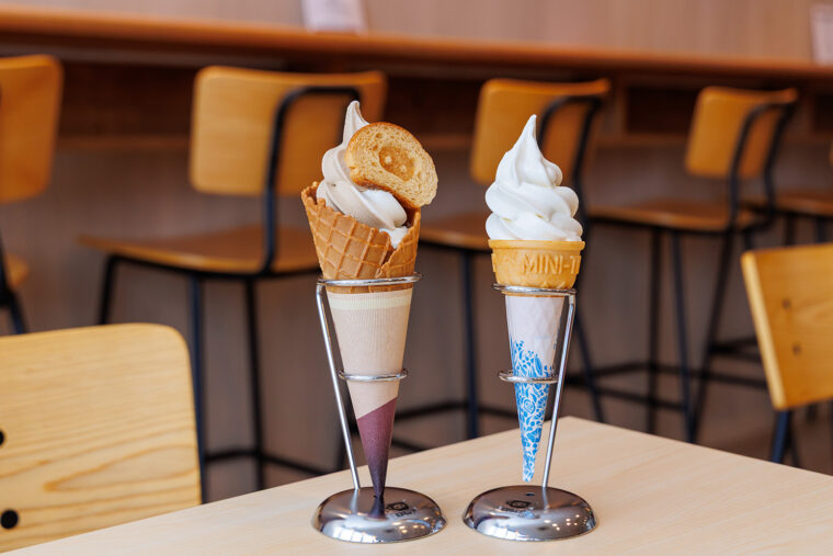 手頃で買い物帰りや休憩タイムのおともにおすすめだ。ワッフルコーンで提供する通常サイズも用意。