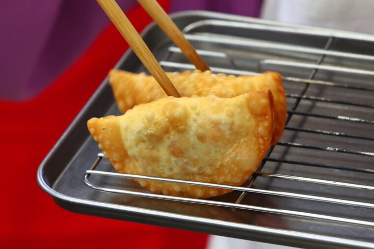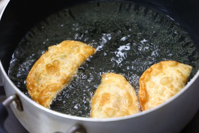 (4).両面にこんがり揚げ色がつくまで油で揚げて完成。