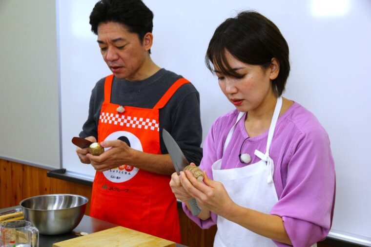 今回の『とれたて! えいっとレシピ』では、聖籠町で「砂里芋」を生産する小林さんと、JA北新潟 営農販売部 園芸課 神田さんに登場していただきました。