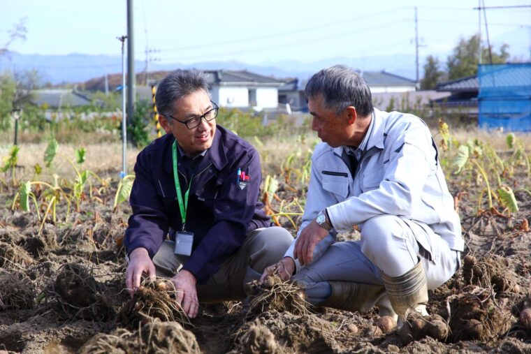 「小林さんは頼りになります。いつもきれいな『砂里芋』を作ってくれます」と神田さんが語れば、小林さんも「神田さんはいつも一生懸命。全国展開で販売してくれるので助かっています」と販売努力に感謝を述べていました。