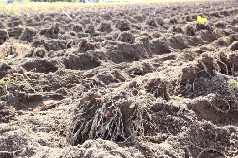 砂地で水はけがよいため乾きやすく、栽培には手間がかかるそうです。夏場は毎日水を与えたり、追肥や栄養を与えたり、土寄せをしたりと、作業は多岐にわたります。