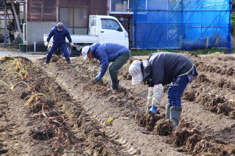 さらに、子芋、孫芋をバラす作業や、サイズ別に選別する作業を経て、箱詰をして出荷となります。その作業は収穫後、翌年3月まで続きます。
