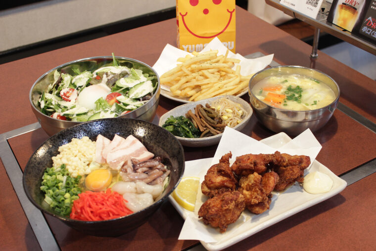 写真は9品で構成される『ファミリーコース』(1人前2,500円、写真は3~4人前)の一例で、2時間の飲み放題が付く『宴会コース』(4,000円)も用意しています。