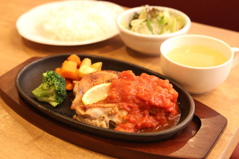 メニュー表の写真より明らかにサイズの大きい『トマトチキンステーキ』(上写真・850 円)も人気だとか。