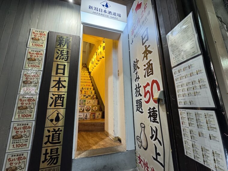 新潟日本酒道場 新潟駅前店は、50種を超える新潟県産の日本酒を、30分・男性1,650円、女性825円(更に初回はそれぞれ半額。以降は10分550円の自動延長)で飲み放題できる明快なシステムの駅前居酒屋さん。