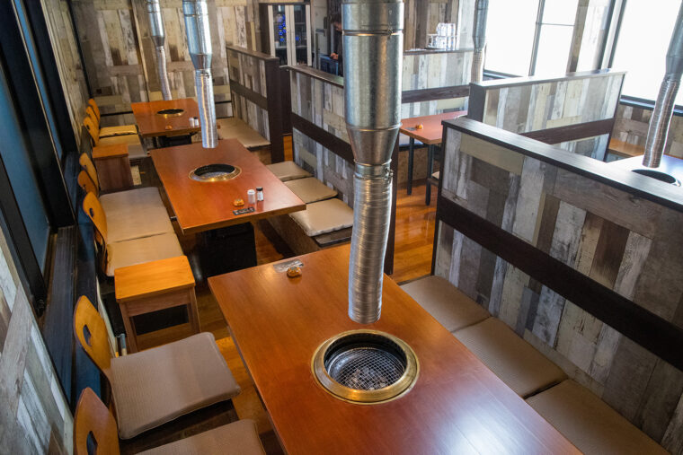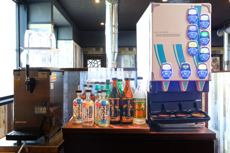 物価高の昨今、手切りの本格焼肉やドリンクをリーズナブルに楽しんでもらおうと、人気銘柄ボトルが飲み放題の『ボトルバー』(100 分1,100円~)を設置しています。