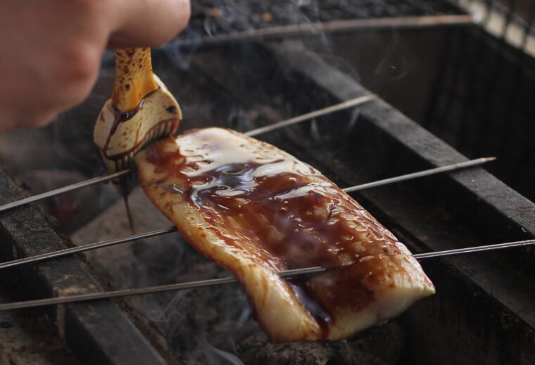 自家干しで余分な水分を飛ばしうまみを凝縮させたサバを、備長炭で香ばしく焼き上げることで、驚くほどふっくらジューシーな仕上がりに。あふれ出す脂と特製タレの相性は抜群です。