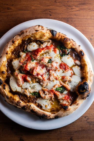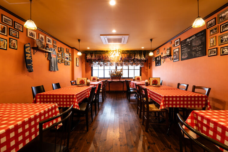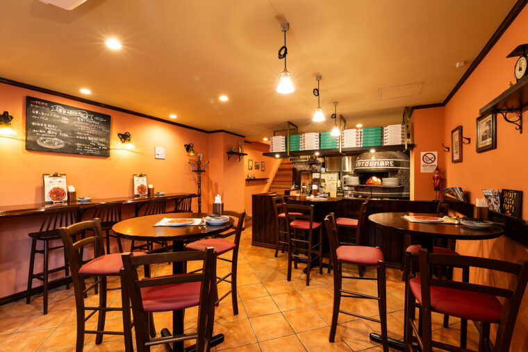店内はひとりでもピッツァを楽しめるようにとピザ窯の前に配置したハイカウンターのある1階と、イタリアの大衆食堂さながら肩肘張らずに過ごせる2階で構成。大切な人とお気に入りの酒を片手にゆっくり楽しめば、おしゃべりにも花が咲きそうです。