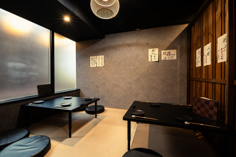 - 39席[テーブル4卓(6名席×1、4名席×3)、座敷2卓(4名席×2)、カウンター13席]