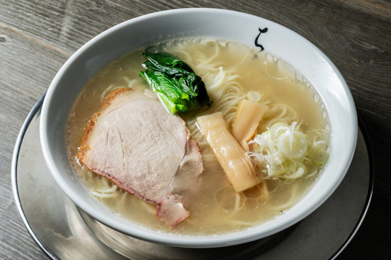 その鮮魚のアラからひいたダシと、笹川流れの藻塩、村上の魚醤を使い、すっきりとした味わいのなかにも食材のうまみを感じられる『笹川流れの藻塩らーめん』はシメの一杯におすすめです。