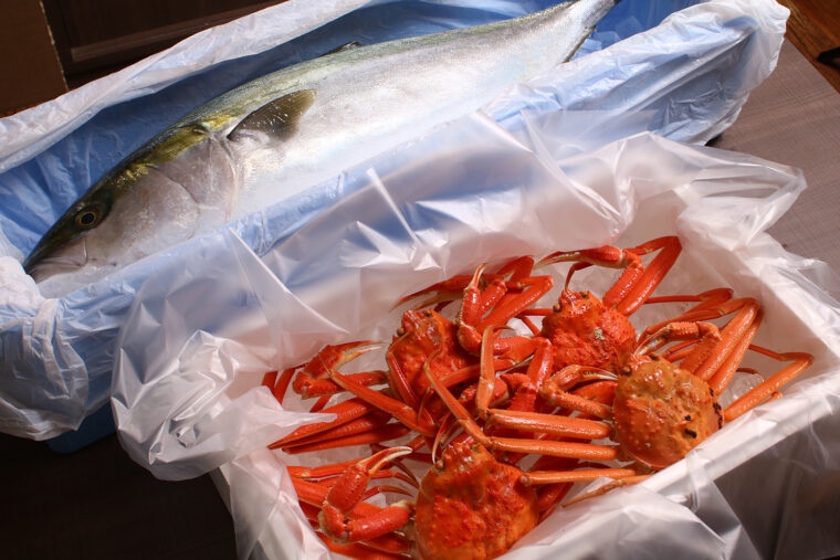 寒い季節ならブリとカニがおすすめ。佐渡沖や能登、氷見の荒波に揉まれたブリは身が締まり、脂ののりも抜群です。水揚げされたばかりのカニは、濃く艶のある赤い甲羅の色が特長です。