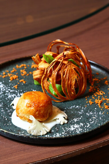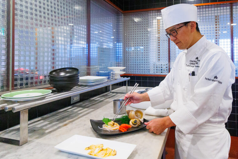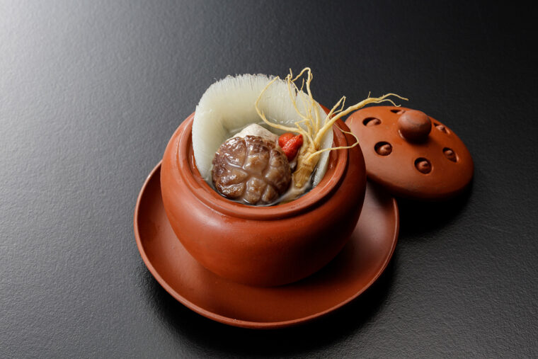 「食べる前から想像を掻き立て、口に含んだ瞬間まで発見があるようなお料理を考案しています」と中野料理長。数十年にわたり、技術と経験を注ぎ込んだその手から生み出されるのは、見た目にも美しく、随所に趣向が凝らされた料理の数々です。