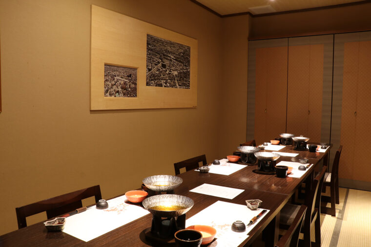 なかでも高級格付等級A5ランクの村上牛を使った『村上牛ロースすき焼き』は、とろける甘味と味わい、そして深い肉質が自慢の看板料理。村上牛はしゃぶしゃぶやステーキなどでも味わえるうえ、それぞれ会席コースでの提供もしているので、接待や記念日などで利用する人も多いです。