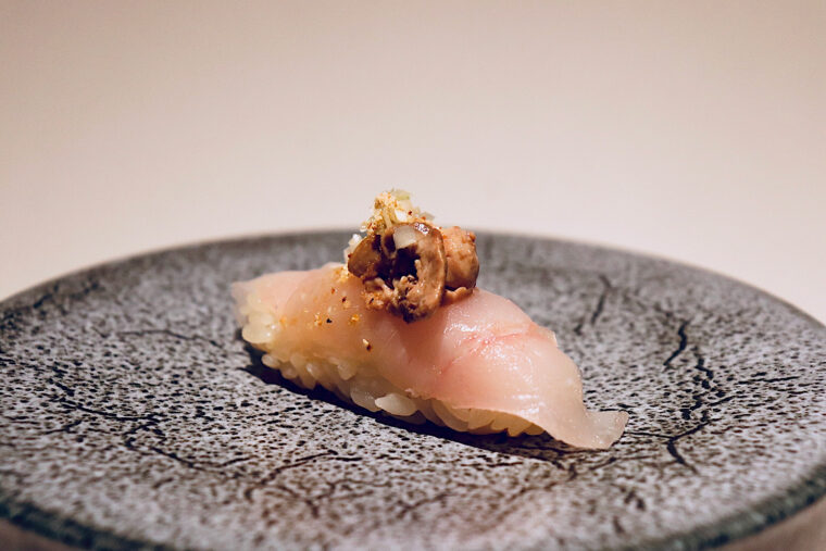 ブランド魚だけに頼らず、その時季の旬を見極めた鮮魚にひと手間を加え、口の中で味わいが整う一貫を提供します。